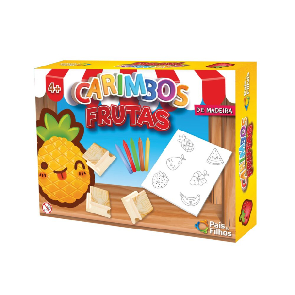 Conteúdo da Embalagem: 01 Caixa de Carimbos de Frutas com 6 peças em Madeira, Pais & Filhos.