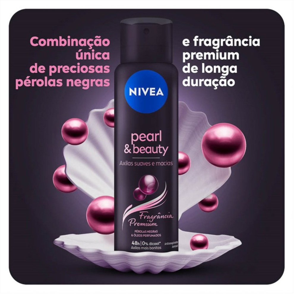 O NIVEA Black Pearl & Beauty Aerossol 150ml é um antitranspirante premium desenvolvido para oferecer proteção prolongada, fragrância sofisticada e cuidado avançado para as axilas. Sua fórmula combina extrato de pérolas negras e óleos perfumados, proporcionando hidratação suave, maciez e um aroma elegante que dura o dia todo.