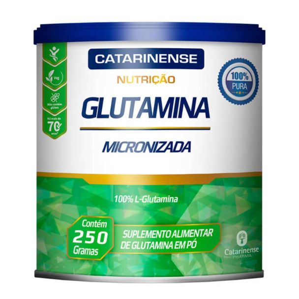 Conteúdo da Embalagem: 1 Frasco com 250 gramas de Glutamina Micronizada Pura em Pó da Catarinense Pharma.