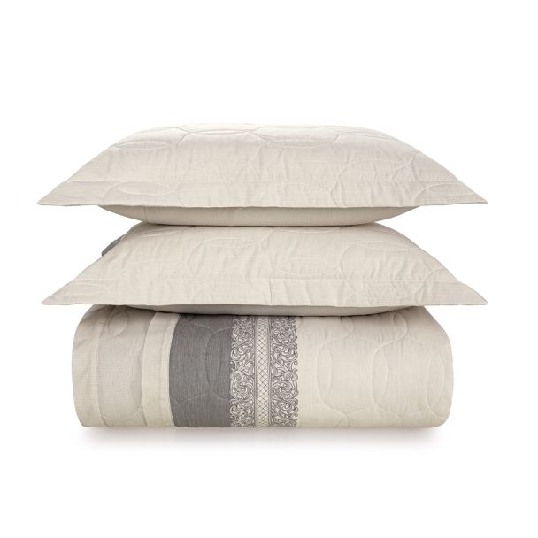 O toque do tecido 100% algodão 150 fios transforma a noite de sono ainda mais agradável. O cobre leito castani estampa arabescos em tons de azul, possui dupla face com cantos quadrados e 2 porta travesseiros com acabamento matelassado.