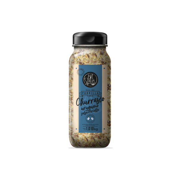Conteúdo da embalagem: 01 Pote de Sal de Parrilla Uruguaio com Salsa Criolla BR Spices 1,010Kg.